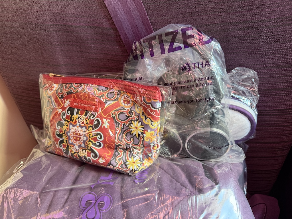 ビジネスクラスにはアメニティポーチが付いている。