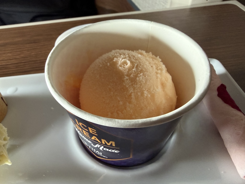 オレンジ系のシャーベットで美味しいけど、、最初はマジで硬かった。