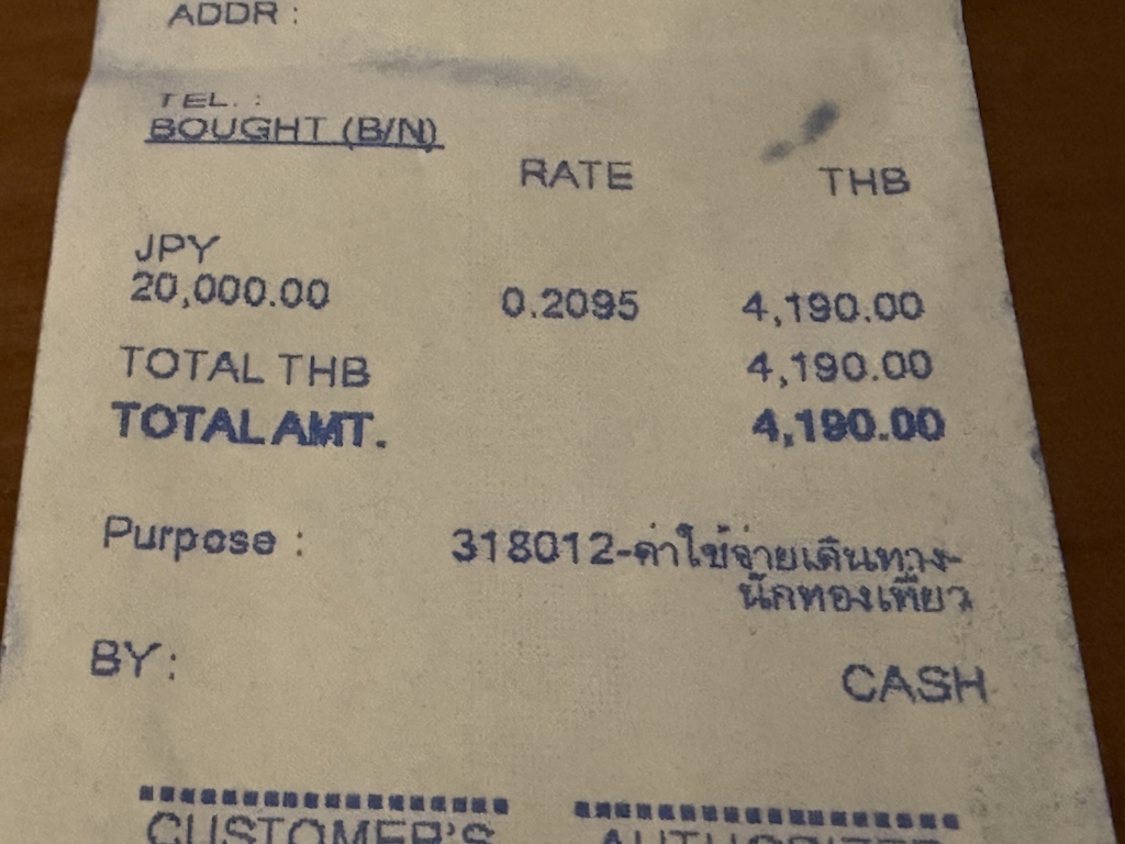 2万円で約4,200バーツかぁ…