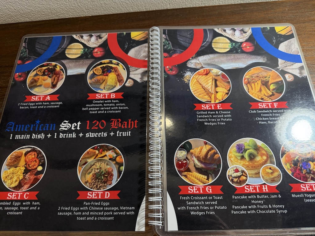 朝食は朝7時〜10時の間に、電話で注文して部屋前まで持ってきてもらうスタイル。