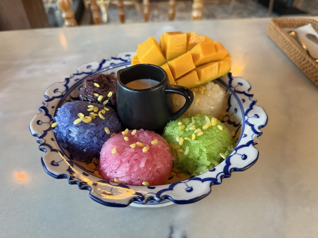 普通に夕飯食べようと思っていたけど、メニューの見た目に釣られてマンゴースティッキーライスを注文してしまった。