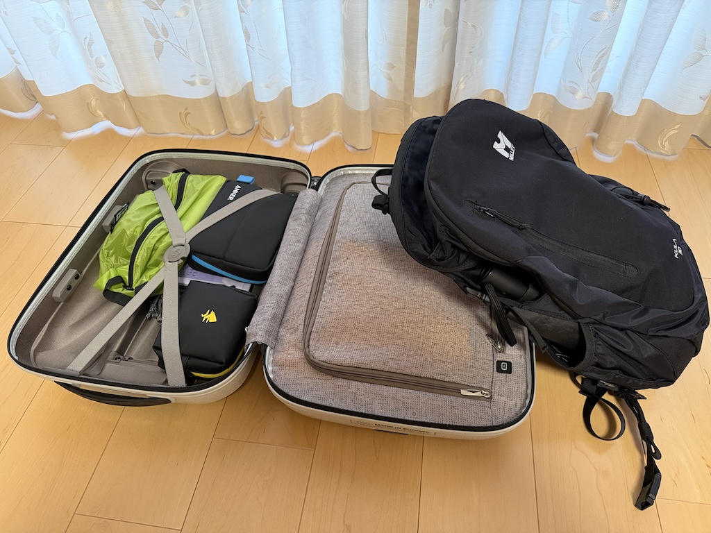 持っていくものといったら着替えと洗面用具(宿にあるので必要ないけど、歯ブラシは自前のがいいので)、あとはパソコンやスマホ、カメラ、それらの充電器といったところ。